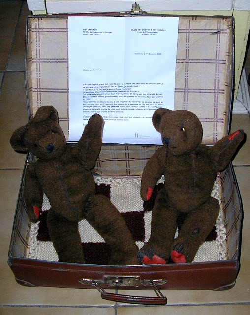 Sitten monsieur kertoo perheensä historiaa. Heitä on 9 lasta ja he asuivat Haute-Savoie vuoristossa Sveitsin rajalla. Hänen kaksosveljensä saivat nämä nallet joululahjaksi vuonna 1953 tai -54 kummitädiltään, joka oli hammaslääkäri ja varakas. Mahdollisesti ne oli ostettu Genevestä, joka oli 20km päässä lähin kaupunki, jossa oli lelukauppa.